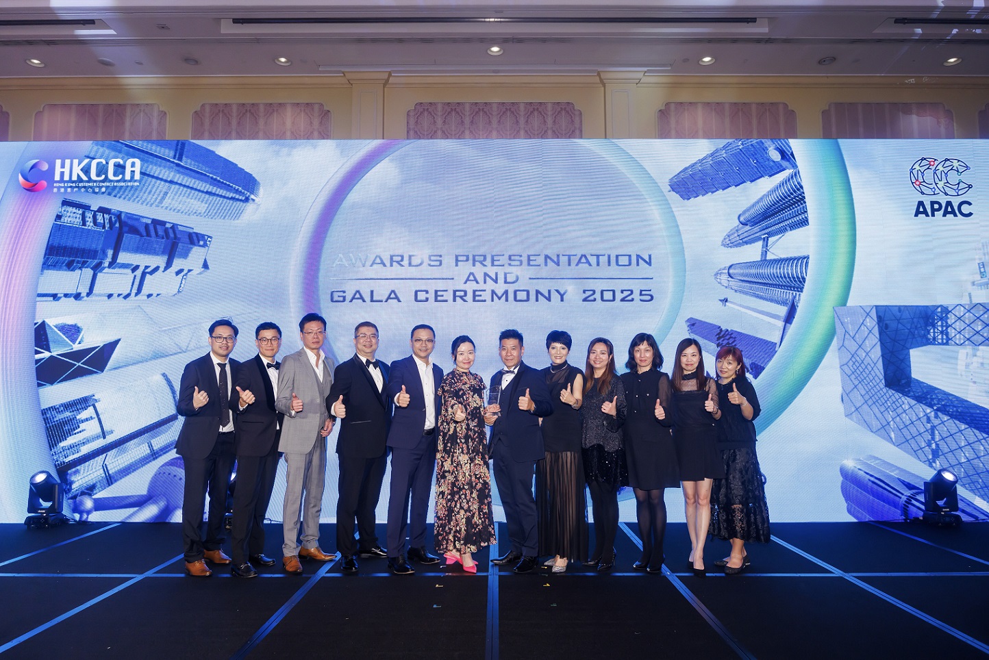 Department heads and representatives of YF Life celebrate the company's win at the ceremony.